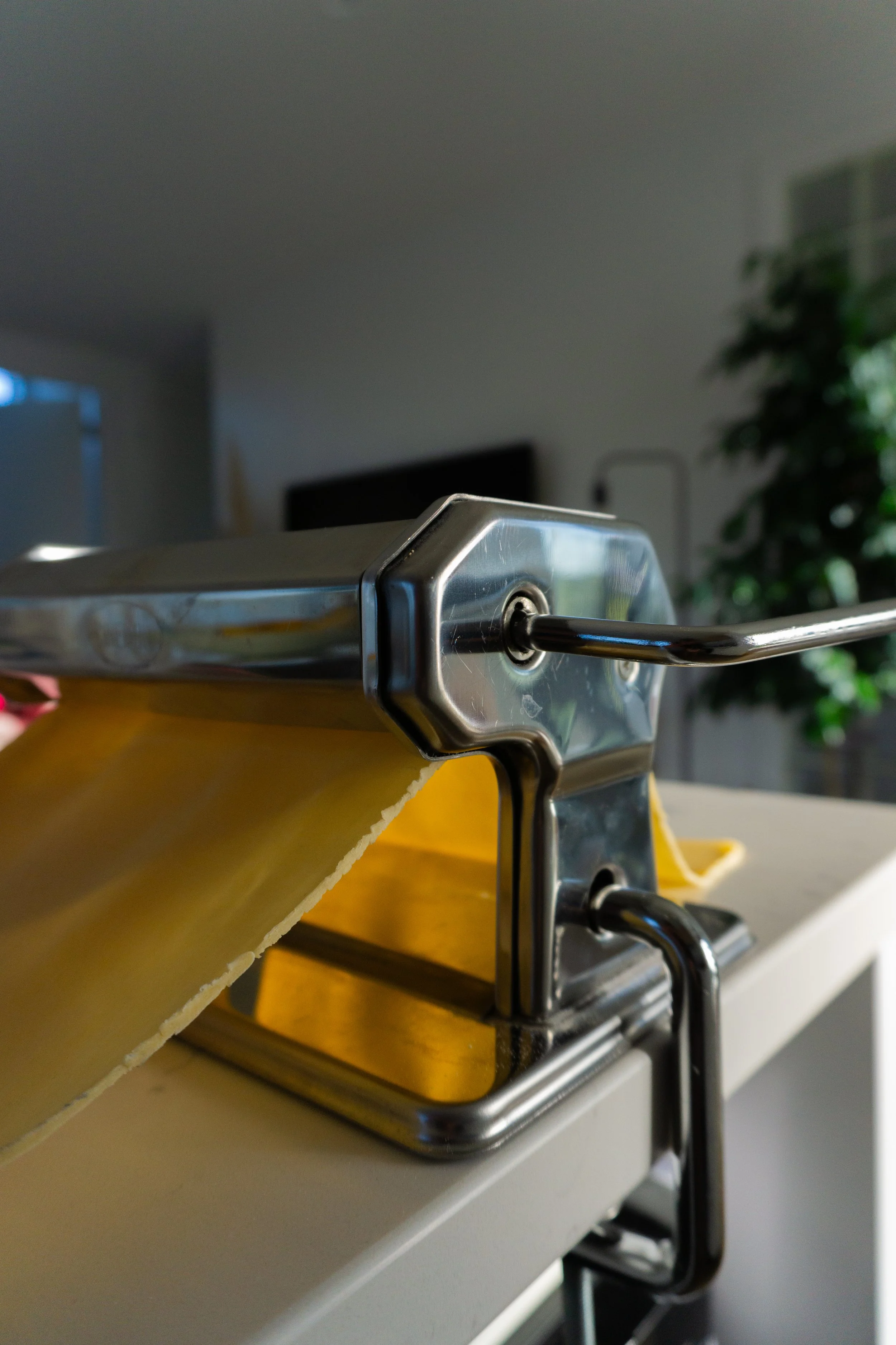 Take the dough out of fridge and roll out on the bench top to as thin as you can (until you can see the shadow of you hand though it) or if you have a pasta roller press flat and roll out.